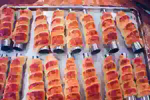 2. Трубочки уложить на слегка смазанный противень на расстоянии друг от друга, смазать яйцом и выпечь.