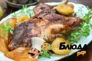 4. Через 40 минут снизить температуру в духовке до 170С и запекать 30 минут. Приготовить смесь из меда и соевого соуса и смазать через 30 минут тушку утки. Запекать еще 20-30 минут без фольги. Мёд и соевый соус придадут коже утки ровный золотисто-коричневый цвет. За несколько минут до готовности, выложить на фольгу с уткой груше в карамели, чтобы они пропитались мясным соком и жиром. Утка с карамельными грушами готова.