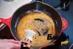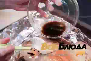 1. Тушку утки вымыть, срезать жировые прослойки у гузки, затем поместить в большую кастрюлю и раковину и полить кипятком. Такая процедура способствует образованию красивой корочки при запекании. Тушку обсушить, натереть солью и перцем снаружи и изнутри. Положить утку на застеленный фольгой противень, завернуть в фольгу и запекать в прогретой до 200С духовке 40 минут.