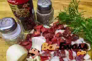 1. Подготавливаем все продукты для приготовления домашней колбасы.