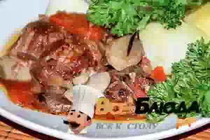 Оленина, тушеная с лесными грибами
