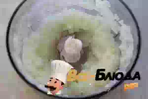 2. Для маринада очистить и порезать на несколько частей репчатый лук. Сложить в блендер и пюрировать вместе с зубчиком чеснока.