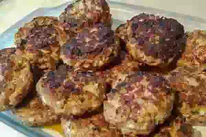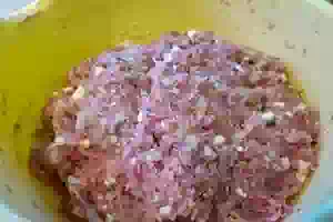 1. Замочить сухари в молоке на 10 минут. Лук мелко нарезать, чеснок пропустить через пресс, мяту мелко порубить.