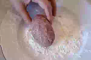 2. Баранину вместе с репчатым луком пропустить через мясорубку со средней решеткой. Для котлет будет лучше приготовить домашний фарш из баранины с жирком. Добавить к мясному фаршу специи и соль. Вымешивать фарш, подливая сливки, пока он не станет однородным. Затем хорошенько отбить о дно миски, бросая фарш прямо в миску с высоты около 30 см. Если фарш хорошо отбитый, во время жарки котлеты не лопнут, не покроются трещинами и не потеряют сочности.