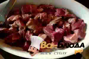 1. Нарезаем мякоть кабана небольшими кусочками.