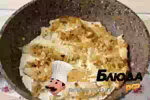 3. На грудку ровным слоем выкладываем жаренный лук.
