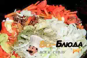 6. Добавить нашинкованную морковь и репу, перемешать, через несколько минут добавить лук, чеснок, порей и смесь сухих пряных трав.