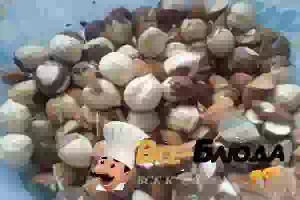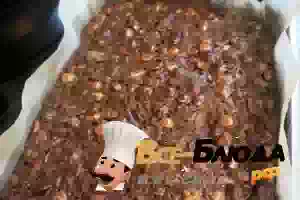1. Фундук поджарим в микроволновке, чтобы убрать коричневую шелуху, миндаль крупно порубим.