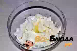2. Разотрите начинку и добавьте яичный белок. Еще раз перемешайте начинку.