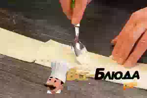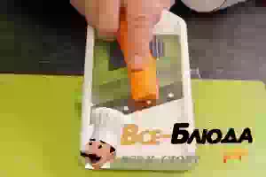 1. Цуккини нарезать тонкими (1 мм) длинными слайсами.