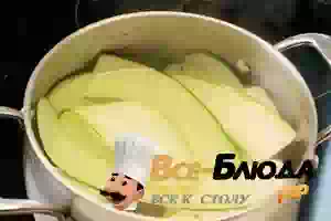 3. Вскипятить воду. Опустить слайсы цуккини в кипяток на 30 секунд. Вынуть и просушить.