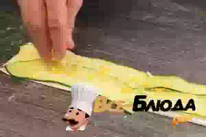 5. Лист фило разложить, сбрызнуть маслом и свернуть в три раза, чтобы получилась длинная полоска.