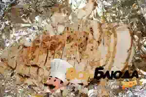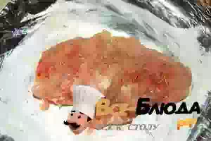 2. Куриное филе выложить на лист фольги, смазанный маслом. Посыпать с обеих сторон приправами. Завернуть в фольгу и запекать при 200 с 30 минут, затем фольгу развернуть и дать ему подрумяниться еще 10 минут. Готовое филе остудить.