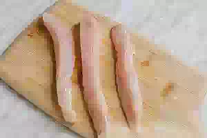 9. Обжаренное куриное филе нарезаем тонкими полосками.