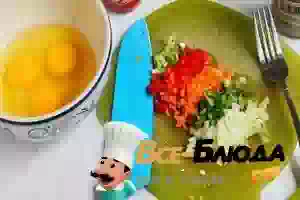 1. Подготовительный процесс очень прост: в глубокую мисочку вбейте яйца. Очистите и измельчите овощи.