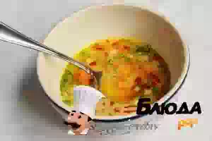 2. Соедините все и взбейте. Добавьте острый и соевый соус, немного соли и перца по вкусу. Еще раз перемешайте.