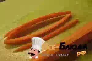 1. Первым делом сварите рис для суши, ориентируясь по инструкции на пачке. Добавьте немного рисового уксуса и остудите его. Очистите и тонкими полосочками нарежьте морковь.