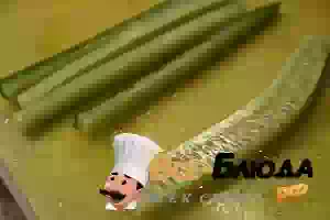 3. Нарежьте тонкими полосочками огурец. Серединку с семечками лучше не использовать, чтобы роллы не размокли.