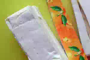 9. Затем нарезать полосками сливочный сыр.