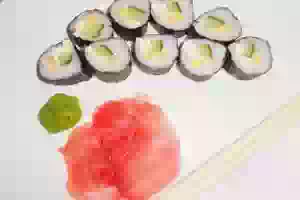14. Подавать роллы с соевым соусом, васаби и розовым имбирем. Кушать желательно сразу после приготовления, так как нори смягчает рис, и роллы утрачивают свои полезные свойства.