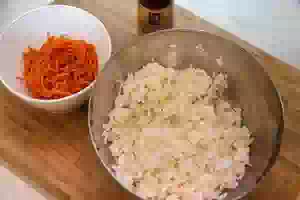 1. Сварить рис для роллов. Сначала крупу несколько раз промыть в холодной воде, засыпать в кастрюлю, залить холодной водой в соотношении 1:2. После закипания воды убавить нагрев до минимума, накрыть кастрюлю крышкой и дождаться, когда выпарится вся вода. На это обычно уходит 15-20 минут. Снять кастрюлю с вареным рисом с плиты, дать постоять ещё 10-15 минут под закрытой крышкой. Когда рис немного остынет, заправить его кунжутным маслом и тщательно перемешать. Оставить остывать до температуры 38-40С.
