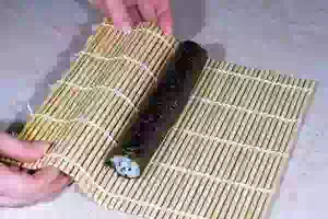 5. Получившийся ролл можно немного покатать, обернув в коврик, чтоб маки суши получились более плотными.