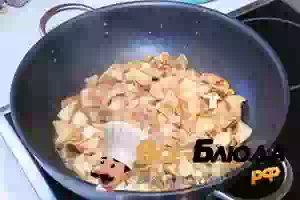 2. В глубокой сковороде или сотейнике разогреть растительное масло, добавить грибы и готовить, помешивая, пока не выпарится вся жидкость. Посолить и поперчить маслята по вкусу и снять с плиты.