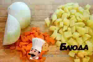 1. Лук, морковь и картофель очистить, нарезать небольшими кубиками примерно одинакового размера. Чеснок очистить и мелко порубить.
