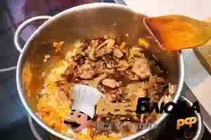3. Залить овощную поджарку с грибами горячей водой из чайника. Как только вода в кастрюле закипит, уменьшить огонь и варить суп под крышкой 20 минут.