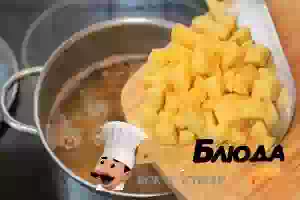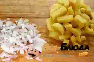 4. Репчатый лук мелко порубить. Картофель очистить и нарезать небольшими кубиками.