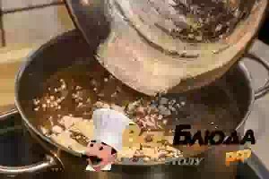 7. Чтобы грибной суп получился приятной, чуть бархатной консистенции, я добавляю в бульон обжаренную муку: сковороду прогреть, насыпать муку и размешивать на среднем огне, пока мука не станет светло-кремовой.