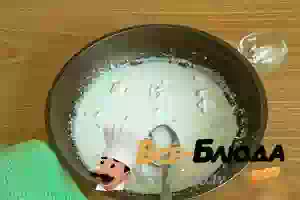 5. Тем временем сливки прогреть на сковороде с добавлением муки. Соус тщательно перемешивать ложкой (или лучше венчиком), чтобы не образовалось комков.