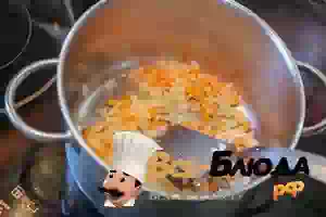 2. В кастрюле с толстым дном разогреть 1-2 растительного масла, добавить лук с морковью и пассеровать на небольшом огне до мягкости овощей.
