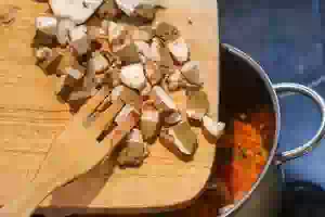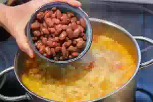 1. Для летних щей можно взять готовую консервированную фасоль или сварить сухую. Сухую фасоль промыть, залить холодной водой, добавить полчайной ложки соды и оставить на ночь. Перед варкой фасоль обязательно промыть, сложить в кастрюлю, залить холодной водой, довести до кипения и варить без соли примерно 20 минут. Вареную фасоль откинуть на дуршлаг, она готова для добавления в суп. У белых грибов обычно достаточно протереть шляпки влажной бумажной салфеткой и подрезать ножки. затем каждый гриб нарезать кубиками, если он крупный, или пластинками, если маленький.