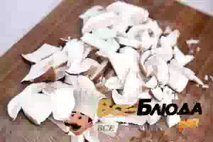 1. Головку чеснока опустить в кипяток и оставить на 30 секунд. Потому чеснок вынуть из кипятка, ополоснуть в холодной воде и очистить от шелухи. Еще раз проварить зубчики чеснока в течение 30 секунд, и снова переложить в холодную воду. И в третий раз повторить эту процедуру, после чего чеснок будет готов к дальнейшему использованию: положить зубчики на разделочную доску, расплющить лезвием ножа и мелко порубить.