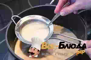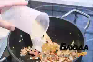 4. Влить вино, готовить, помешивая, пока оно не выпарится.