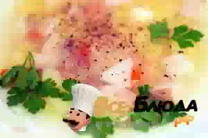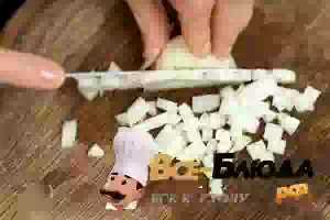 7. Добавляем лук. Вводим манку, помешивая суп. Варим грибной суп еще 10 минут.