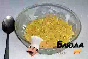 7. Берем макаронные изделия на ваш вкус. У меня пол стакана вот таких кругляшков. Можно использовать домашнюю лапшу.