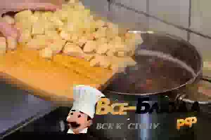 3. В кастрюле разогреть примерно 1 неполную ст.л. растительного масла и пассеровать на нем лук с чесноком. Налить в кастрюлю примерно 1.7 л воды из чайника. Когда вода закипит, добавить большую часть грибов. Уменьшить огонь и варить под крышкой примерно 10 минут.