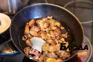 5. Оставшуюся треть вареных нарезанных грибов обжарить на растительном масле.
