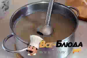 6. Когда картошка в супе будет готова, снять кастрюлю с плиты, дать ему немного остыть. Пюрировать в чаше блендера. Или, не переливая суп в блендер, пюрировать его прямо в кастрюле погружным блендером.