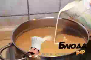 7. Вернуть получившееся пюре в кастрюлю и долить жирные сливки.
