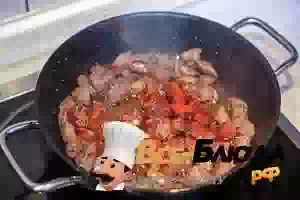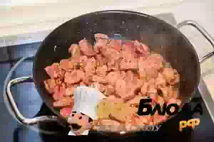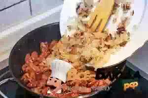 5. Вернуть в сковороду пассерованный лук и перемешать.