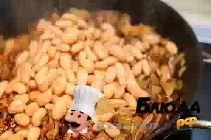 6. К почти уже готовым куриным сердечкам добавить консервированную белую фасоль. Прибавить немного воды и тушить все вместе под крышкой до полной готовности куриных сердечек. На это уйдет примерно 10 минут. Готовое блюдо из жареных куриных сердечек с белой фасолью разложить по тарелкам и подавать к столу. Перед подачей можно посыпать сердечки с фасолью свежей зеленью.
