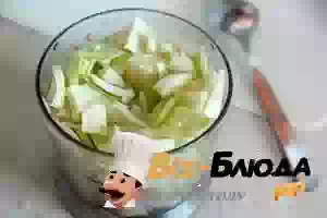 4. В блендер отправить капусту и лук. Пробить овощи в блендере до однородности.