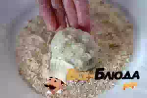 7. На плоскую тарелку насыпать слой панировочных сухарей и по очереди обвалять в них каждую котлету со всех сторон. Подсыпать молотые сухари на тарелку по мере необходимости.