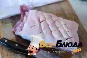 1. Свиные ребрышки промыть под проточной холодной водой и обсушить бумажными полотенцами. Полоску ребер можно оставить целой, как это сделала я, или разрезать на порции по 1-2 шт. вдоль реберных косточек. Если с ребрышек не снята кожа, то надрезать её ромбиками, как показано на фото.