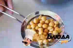 2. Вареный нут откинуть на дуршлаг, чтобы стекла вода.