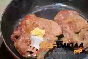 5. На каждую отбивную положить по ложке пряного сливочного масла, дождаться, когда оно растает и поливать мясо уже растопленным сливочным маслом. Снять сковороду с плиты. Разложить шницели по тарелкам и подавать сразу же с картофельным пюре или другим гарниром по вкусу.