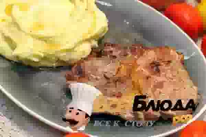 5. На каждую отбивную положить по ложке пряного сливочного масла, дождаться, когда оно растает и поливать мясо уже растопленным сливочным маслом. Снять сковороду с плиты. Разложить шницели по тарелкам и подавать сразу же с картофельным пюре или другим гарниром по вкусу.